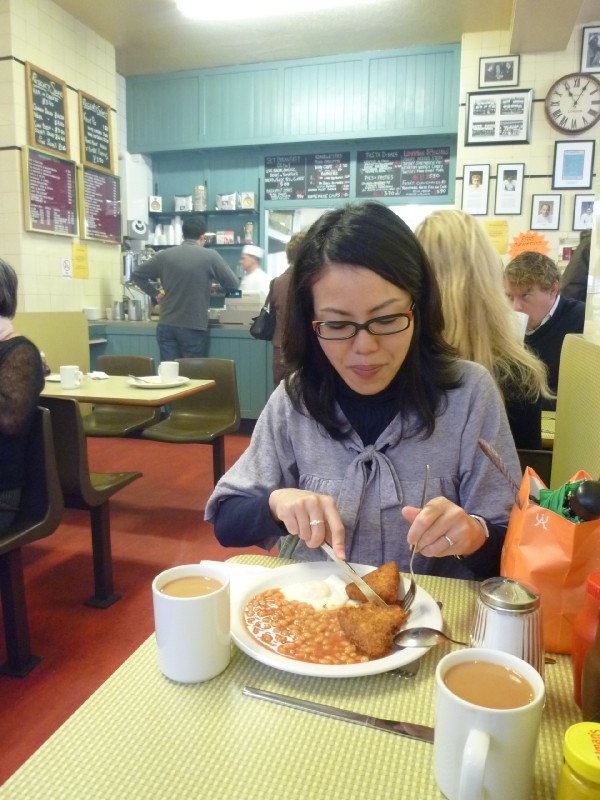 | 11:03:33 Chie tucking into her breakfast at the Regency Cafe. | 11:06:55 My breakfast. | 11:07:40 I don't think this picture quite captures how deliriously happy I am when having breakfast here. |