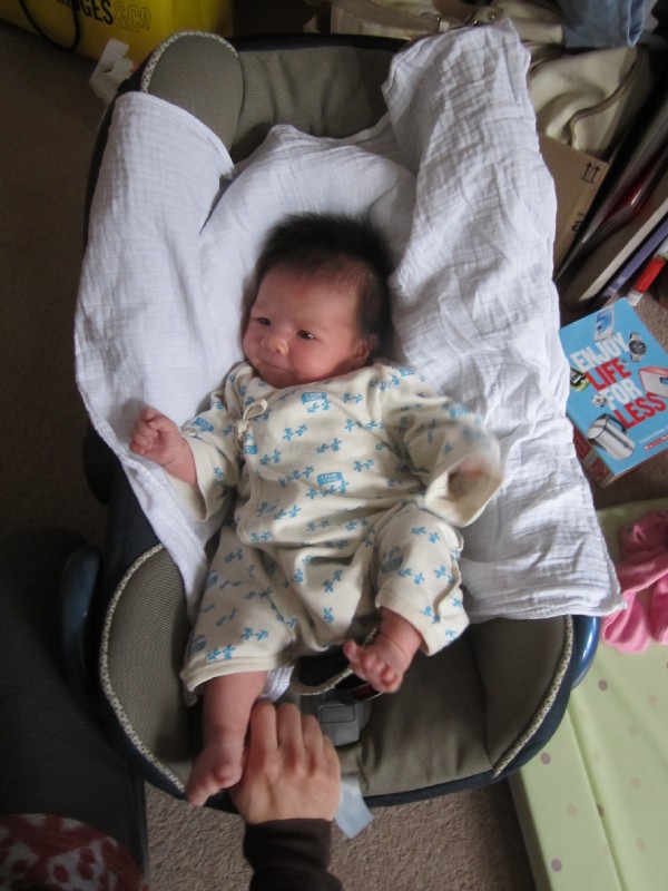 08:49:57 Erika in her car seat, taken before I went off to work. | 10:04:09 Me and Kyle at work, wearing hats. | 10:04:19 | 10:04:36 |