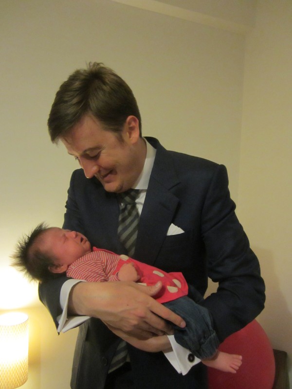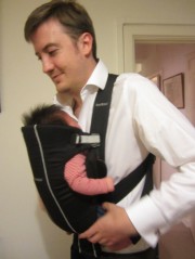 18:44:57 I probably shouldn't be the one sitting down in this picture. | 19:34:19 Trying out the baby carrier - this wasn't hugely successful. |