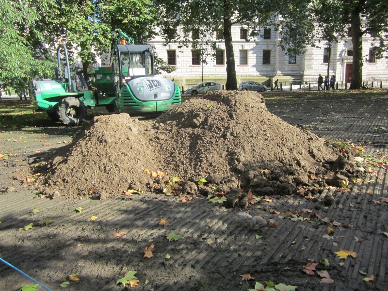 09:24:41 Took Erika for a walk around the gardens in the morning to give Chie chance to have a bit of a lie in. | 09:24:49 | 11:32:12 Erika in a cardigan my Mum made for her. | 14:24:05 Digging in St. James's Park - at one point the squirrel was atop the mound of earth and I thought it might have been a good opportunity for a joke about finding buried nuts or something. Alas I was a bit too late. |