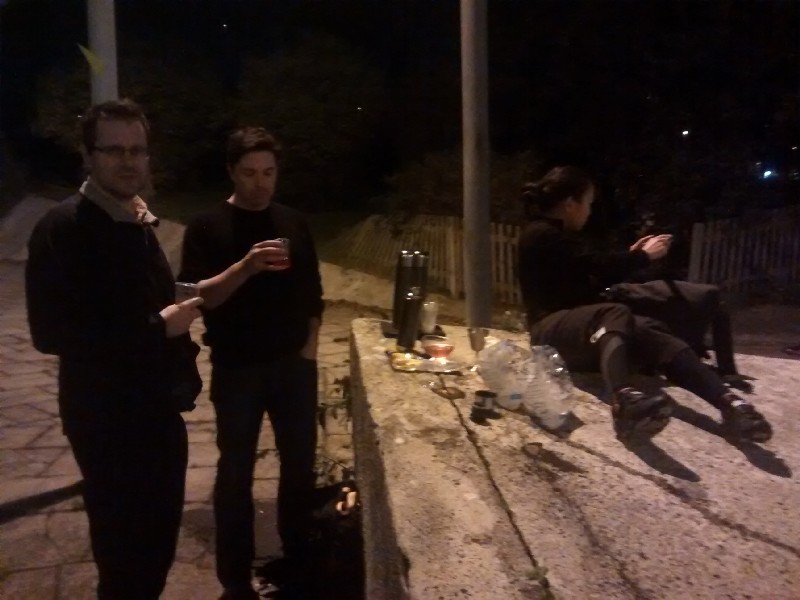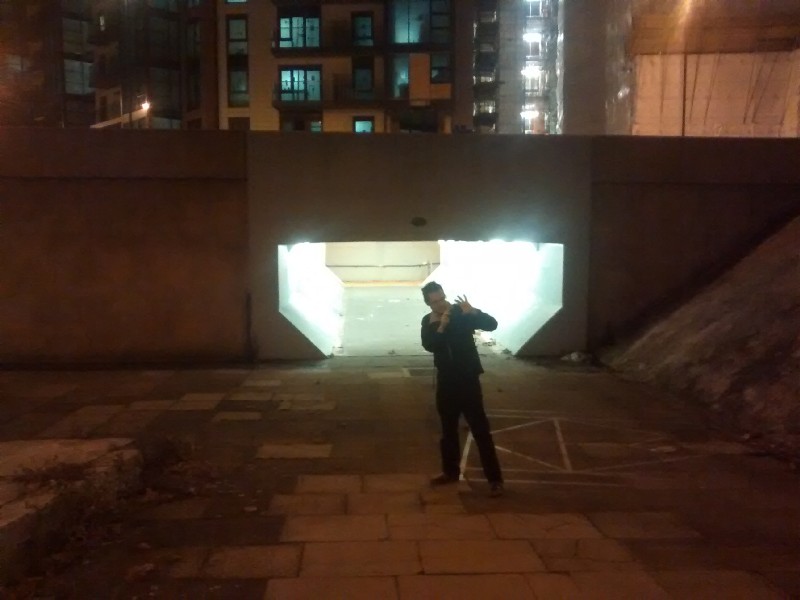 11:23:03 Some of the cocktail ingredients at the office. | 18:31:42 Now at Wandsworth Roundabout, with its bizarre sculpture thing. | 18:31:53 All pretty dystopian. | 18:36:44 This bit of concrete became our bar, of sorts. |