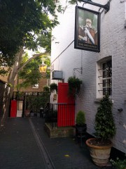 12:37:37 Stack of dimsum steamers. | 14:29:23 First stop on my goodbye tour of Belgravia - the Nag's Head. | 14:57:54 The secret passage between the Nag's Head and the Grenadier. | 14:58:21 Side of the Grenadier. |