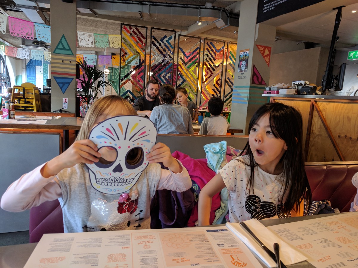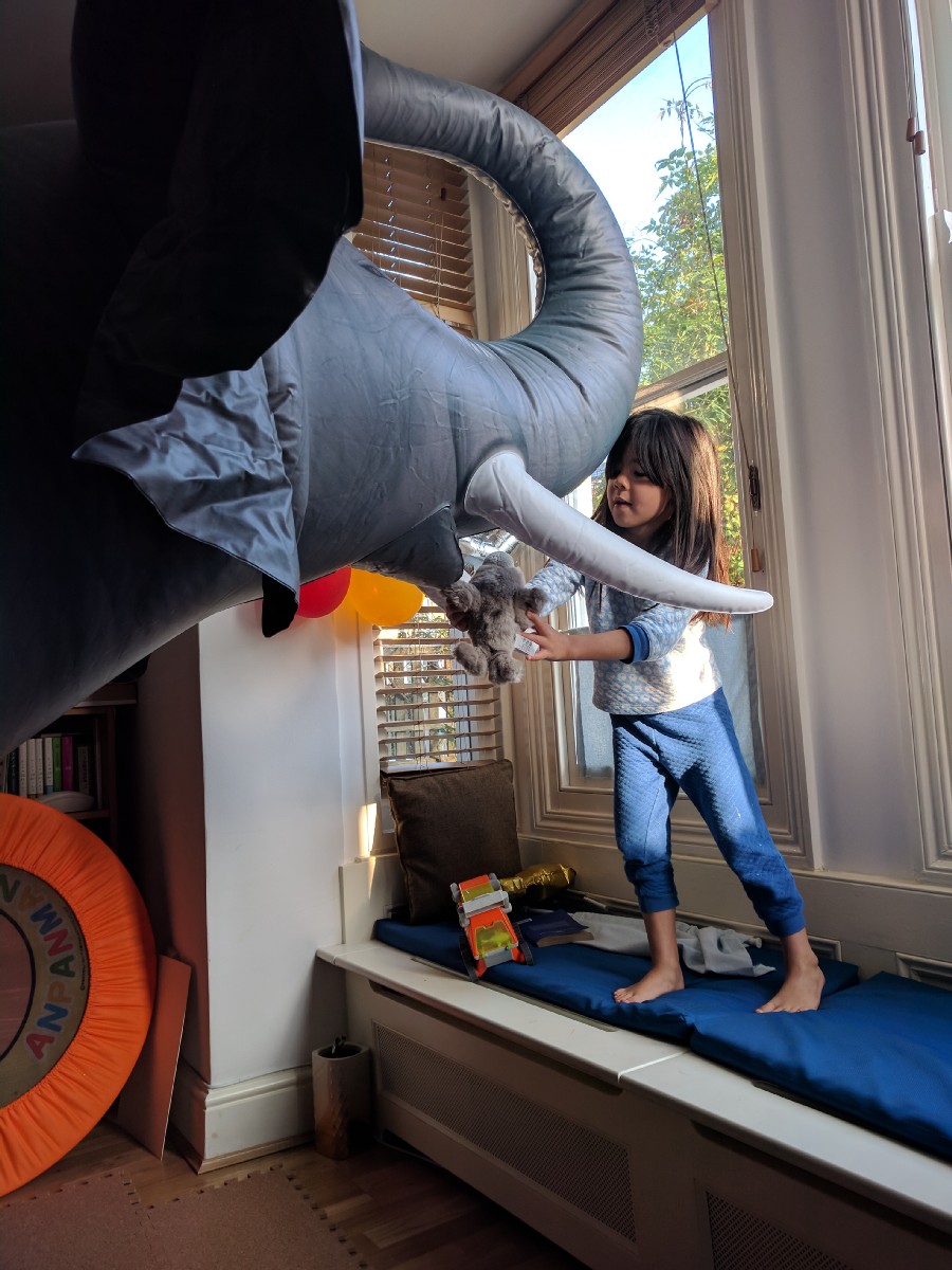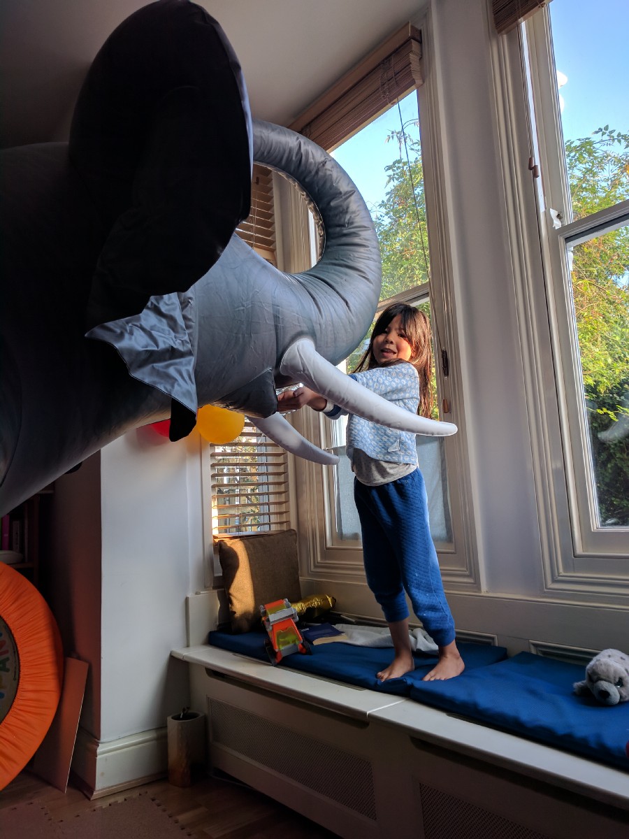 More fun with the elephant in the morning, then lunch with Zia at Wahaca.