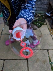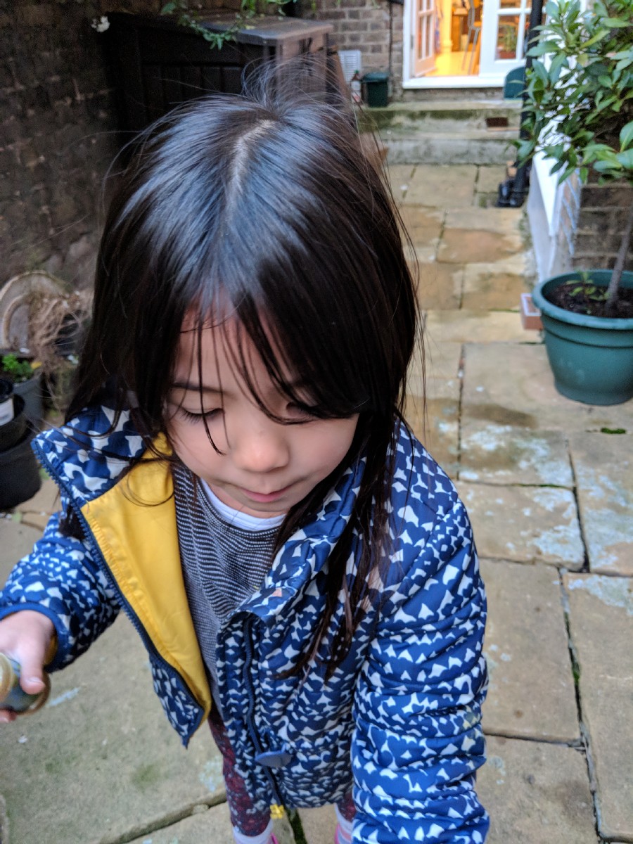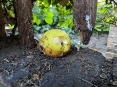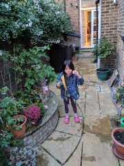17:33:37 The mystery apple returned! Our little apple tree only had three apples this year, and one disappeared just before we were going to pick it - then a week or so later it was here on top of the garden wall. Weird! | 17:48:07 Erika blowing bubbles. | 17:48:09 | 17:48:15 |