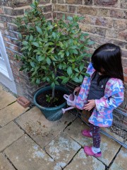 15:46:21 Erika having an ice cream. | 17:21:23 The new little citrus tree I got for the garden last weekend. | 17:26:20 Erika watering the paving slabs. | 17:27:54 Handy water supply. |