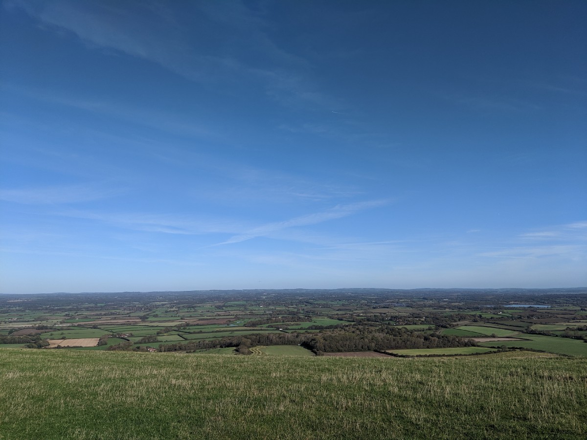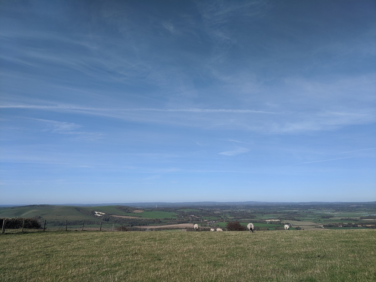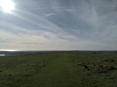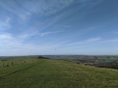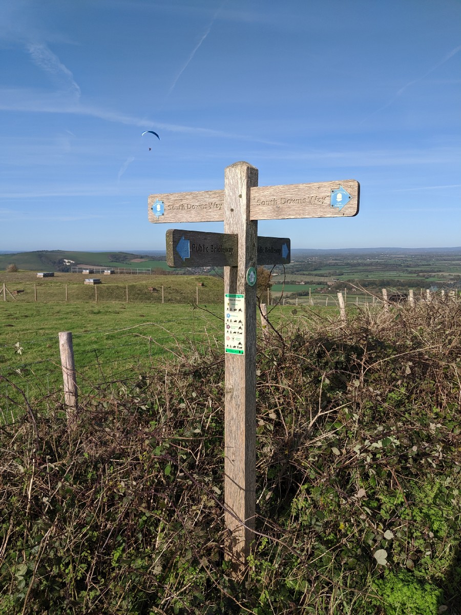 11:20:00 We got the train down to Lewes, and stopped off there to buy Erika some hiking boots. | 11:20:12 She chose these, more like snow boots really, but I thought they'd be handy for the winter. | 11:45:06 Erika on arrival at Bostal Hill. I had very pragmatically cheated and got a taxi to here, so we could start our walk right on the South Downs Way (and at the top of the hill!). | 11:45:22 The South Downs Way. |