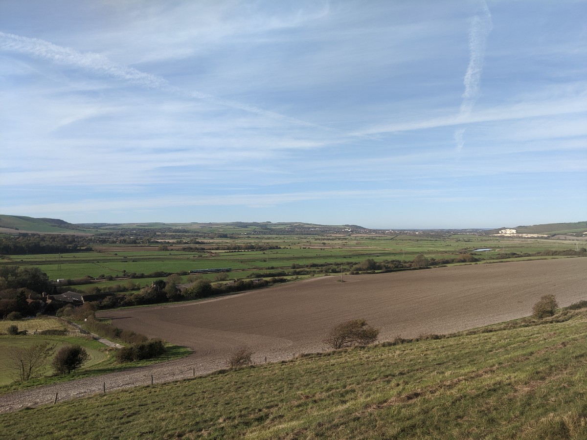 13:24:40 A bit of abandoned farming machinery. | 13:29:30 Cows and the landscape. | 13:31:10 | 13:38:35 Nearing the end of our walk, and starting to head down the hill towards Southease now. |