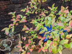 Autumn Saturday 3rd October 2020 Feeling very autumnal - the leaves on the blueberry bush changing colour. | Undrinable Homemade Wine Sunday 4th October 2020 "Bottled" the wine I had made in 2020 so I could make use of the fermenting vessel again for this year's harvest. It doesn't look good. Takoyaki (or a vegetarian version thereof) for lunch, a stroll on the heath in the afternoon, and some more Roebuck Estates in the evening. | |