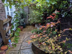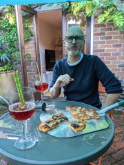 Cider Friday 16th October 2020 Cider out in the garden after work, and generally feeling very autumnal still. | Sneaky Pint, Yard Sale, Lebanese Food and Butterbeer Saturday 17th October 2020 Packed quite a lot in today in retrospect. Went to our local Middle Eastern food shop in the morning to buy things for a Lebanese dinner this evening (it being our wedding anniversary) and timed it perfectly for a sneaky pint at the one table outside the Pineapple on the way back. Went to Erika's friend's school yard sale in the neighbourhood later on, and picked up a wedding anniversary present for Chie - a Lost in Translation DVD. Lebanese food for dinner including some 1997 (!) Chatea Musar. After dinner I had a go at making Butterbeer (from Harry Potter) for Erika. | Platform 9 3/4, Hampstead Heath and Fairy Lights Sunday 18th October 2020 Erika and I walked down to St Pancras in the morning to visit the Platform 9 3/4 shop there, so she could pick up a couple of Harry Potter items she had wanted for a while. Another perfectly timed opportunity for a pint outside the Pineapple on the way back. In the afternoon I went for another walk to the heath, then in the evening we put some fairy lights up in the garden. |