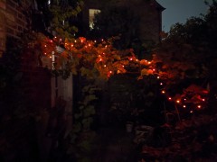 19:16:54 The new addition to the garden - these (battery powered) fairy lights, which Erika had picked up from her school yard sale earlier this year. | 19:17:03 Tried the photo again with night mode on, which made it look much lighter. | 19:19:25 | 19:19:29 |