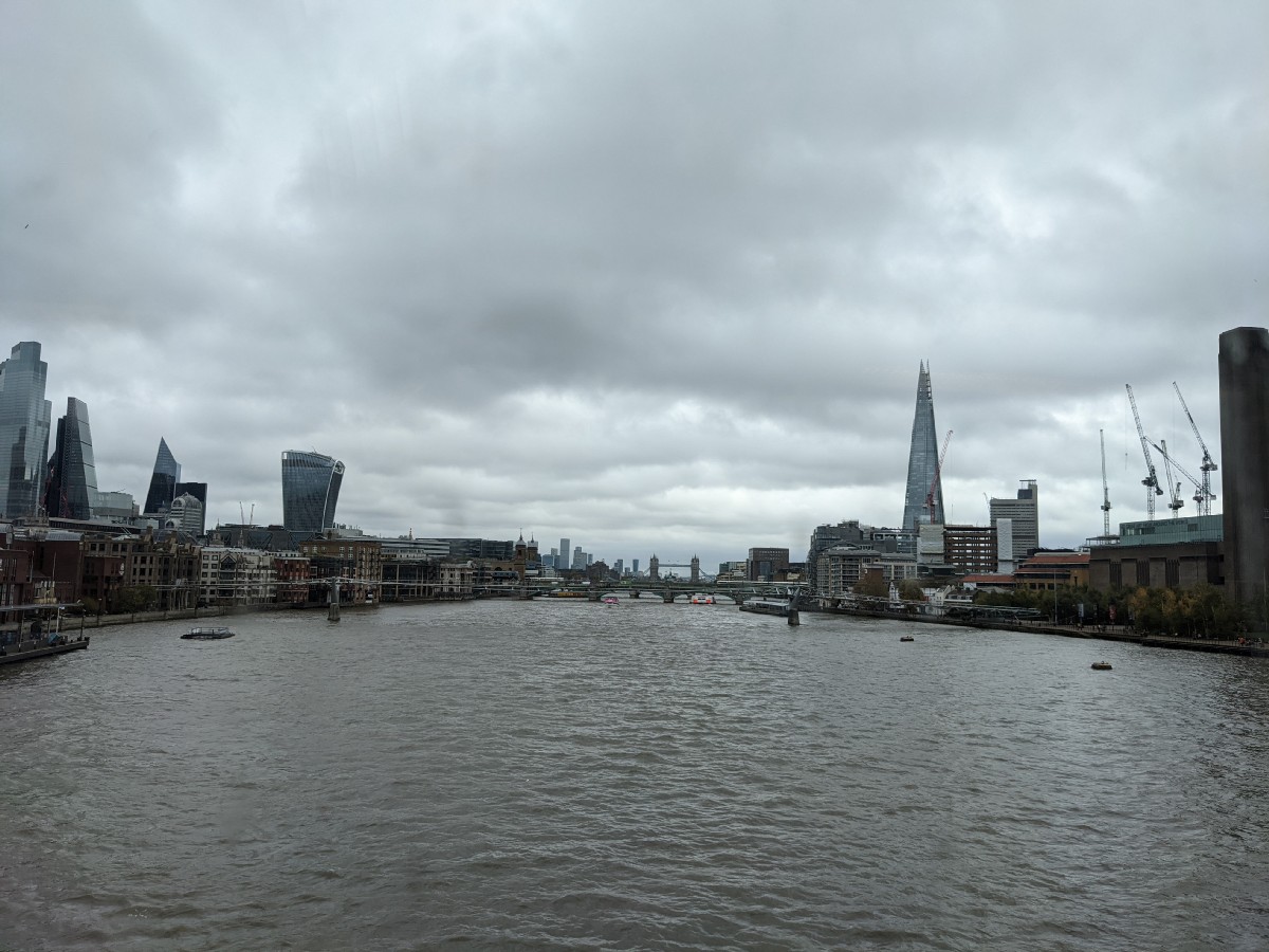 10:41:35 In the morning I asked the girls to have a go at cutting my hair - there was some dithering at the start and keen to just get on with it I grapped the trimmer myself and had a swipe at the back. Unfortunately the attachment which governs the length wasn't attached properly, so one streak ended up ridiculously short. Oh well! | 12:05:48 Erika on the Thameslink down to Blackfriars. It may seem like a very odd way to get Belgravia from Kentish Town, but I was keen to avoid the tube - and the original plan was that we'd walk from Blackfriars to Belgravia. | 12:20:57 As it happens though by the time we got to Blackfriars (after a false start) there wasn't enough time to walk for our 1pm booking, and Erika wasn't really keen on the idea in the first place, so instead we got a cab. Which still made for a nice tour through central London I suppose. | 12:55:41 On arrival at Oliveto, I ordered a couple of starters to keep us going. |