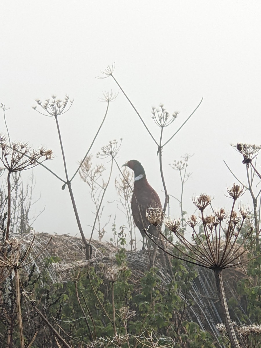 08:57:17 A pheasant in the mist. | 08:57:21 | 09:02:27 This looks particularly misty as it was zoomed in a fair bit - I think I was trying to get more pheasants in shot. | 11:26:46 Took quite a while to get back to London, but here I am on the Elizabeth line with my mudder gaiters on. |