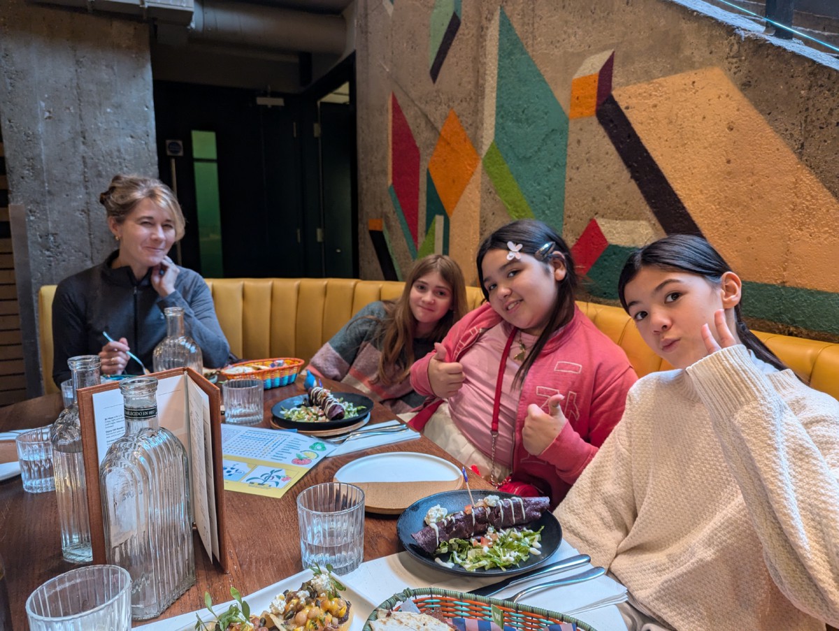Erika and a couple of her friends at Wahaca for a late lunch.
