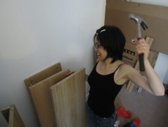 18:30:09 Domaine Heresztyn. | 18:36:54 Assembling the book case we picked up earlier... | 18:40:08 | 18:50:03 Chie with a hammer. |