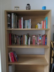 The messy corner of the lounge where the previous overflowing bookcase is.