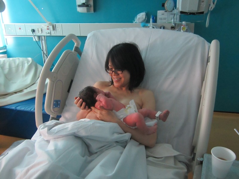 14:33:53 Mum and baby back together again. | 14:34:02 | 14:34:12 The three of us. | 14:45:58 For posterity I thought I'd take a picture of some of the equipment in the birthing room - this bizarre contraption was actually what we used to give birth, believe it or not. |