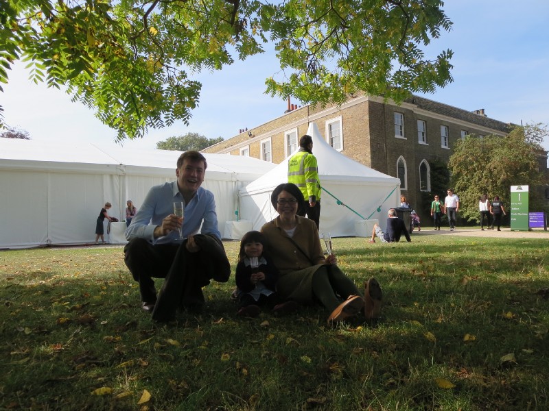 11:48:36 Erika with the drink we were given on arrival - don't worry it's not alcoholic! | 11:49:31 The three of us with our flutes on the lawn. | 11:49:59 ...and again with my jacket on (it turned out to be a bit too hot for tweed!). | 12:08:05 Erika watching the dog show. |
