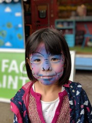 11:09:55 Erika had her face painted - apparently a lizard. | 11:53:22 Me and Erika having an early lunch in the zoo cafe. | 12:25:54 Ants on a rope in the bugs house. | 12:25:59 |