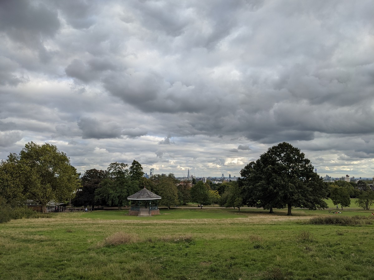 17:03:13 The usual view of the bandstand and the London skyline on arrival at the heath. Bit cloudy at this point. | 17:05:48 Some blue sky trying to break through as I passed the top of Parliament Hill. | 17:07:50 Acorns. | 17:08:04 |