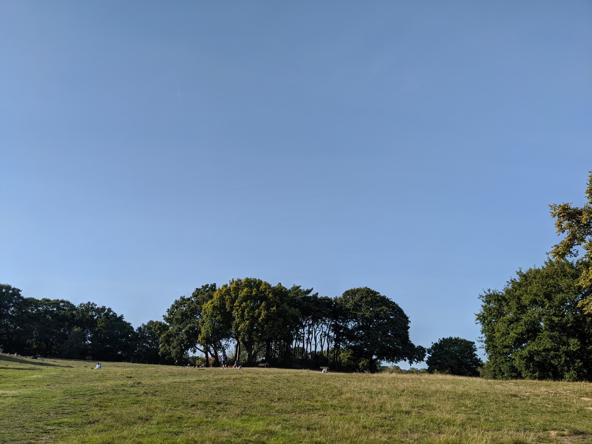 17:06:47 Long shadow. | 17:06:52 | 17:09:55 The London skyline through the trees. | 17:11:14 A mushroom. Not sure what this is but presumably not edible - there were quite a few of these around. |