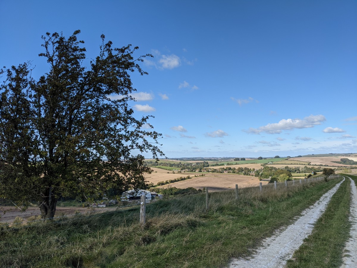 13:30:55 First glimpses of Silbury Hill in the distance towards the left hand side here. | 13:31:00 | 13:31:45 It turned out this section of track was marked as being part of the ancient Ridge Way on the OS Map. | 13:33:18 |