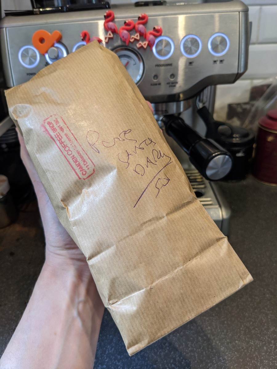 12:09:30 Received from replacement tweed trousers for a pair from one of my tweed suits which I've had for five years, and are now a bit worn out. | 13:39:46 Coffee beans from Camden Coffee Shop! Well done Chie, who perservered and finally managed to buy some today. | 15:42:14 Apples on the tree. | 15:42:35 |