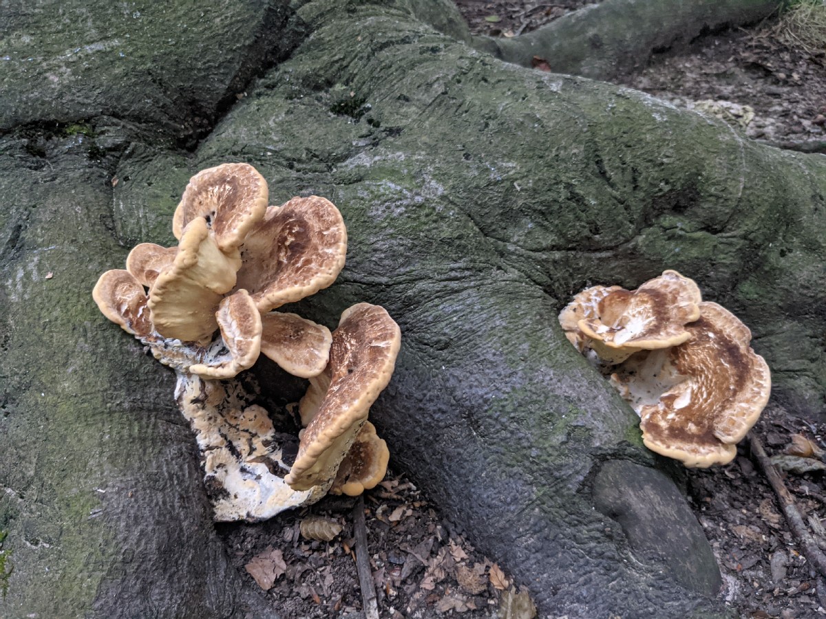 18:19:40 Around the barrow. | 18:19:47 A squirrel. | 18:22:49 In the woods. | 18:23:55 Plate fungus on a tree. |