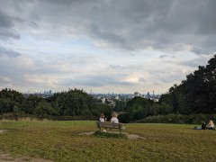 17:01:39 Heading up Parliament Hill, and with a fair amount of grey skies in the foreground at this point. | 17:02:55 The view from the top of Parliament Hill this evening. | 17:03:14 Various other people here for the evening. | 17:03:20 |
