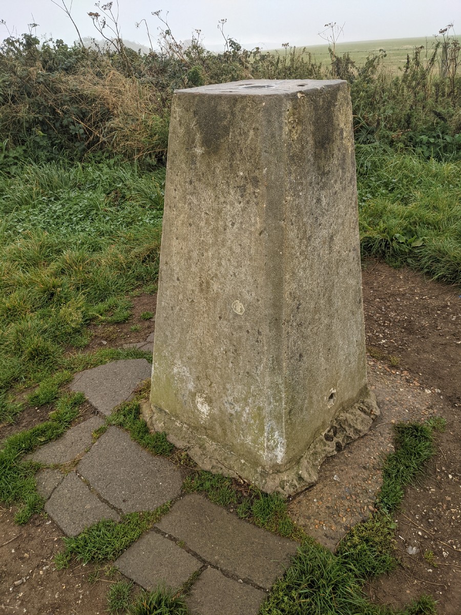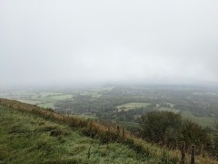 12:38:28 Still quite misty when I reached the top. | 12:40:10 The trig point atop Ditchling Beacon. | 12:40:18 Me looking a bit worn out atop Ditchling Beacon. | 12:40:31 |