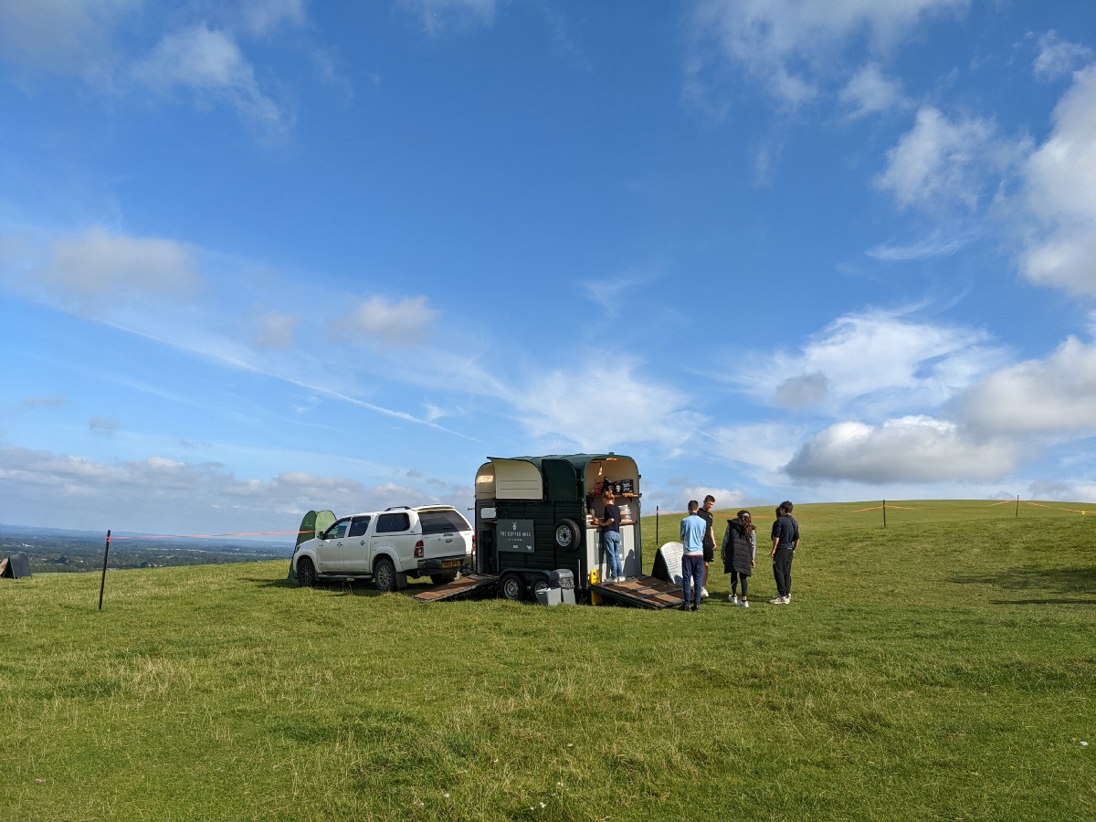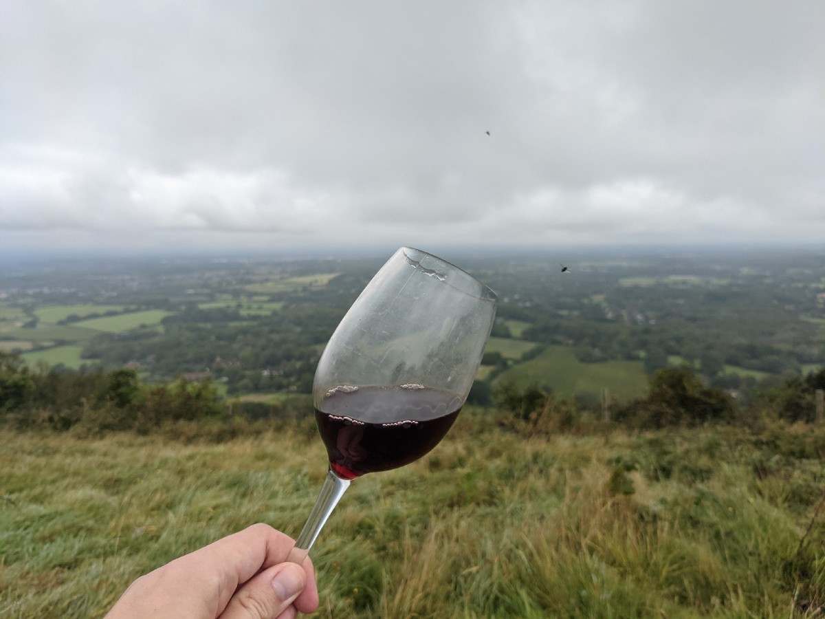 12:55:31 Settling down for lunch for a bit, in a nice spot just off the path atop Ditchling Beacon. | 13:02:04 With some Gevrey Chambertin to accompany lunch. | 13:03:36 Although my dehydrated camping meal was probably not deserving of the accompanying fine wine. | 13:06:36 My little campstove. |