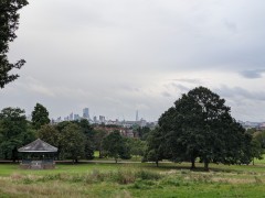 17:41:39 The view of the bandstand. A bit grey this evening. | 17:45:35 I brought an aperitif and some nibbles with me. | 18:20:08 Once again, picking Erika up from her woodwork class, which is weirdly next to Highgate cemetery. | 20:33:12 Candles in the garden later on. |