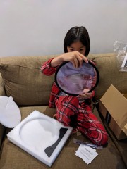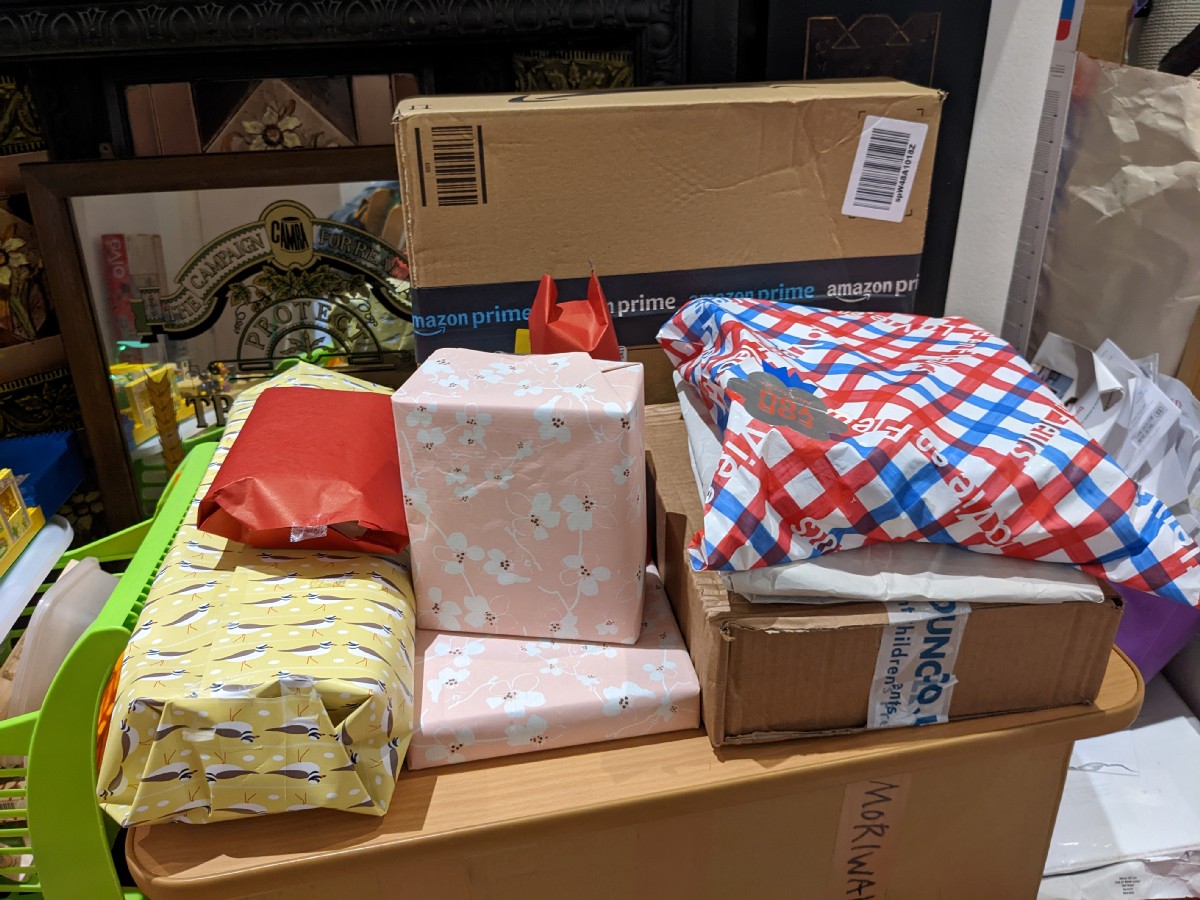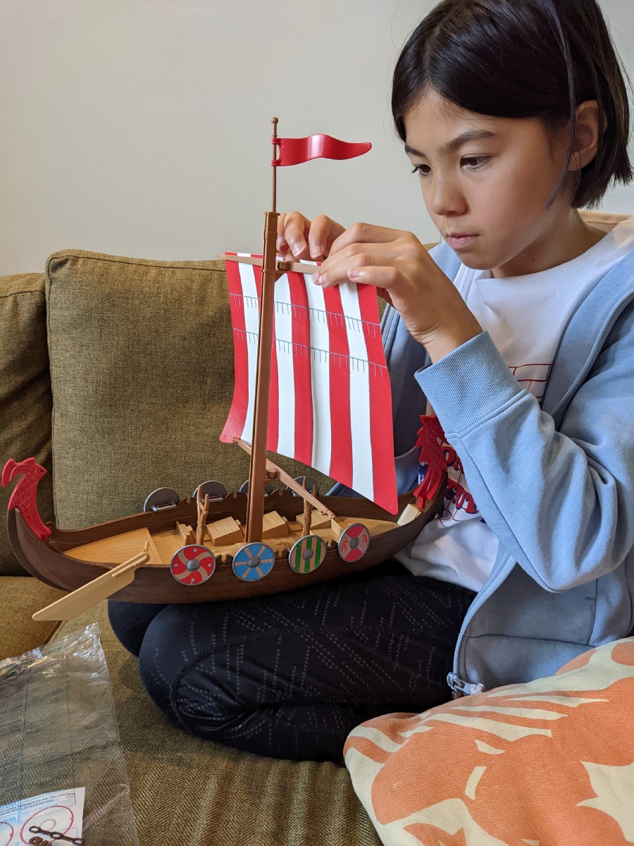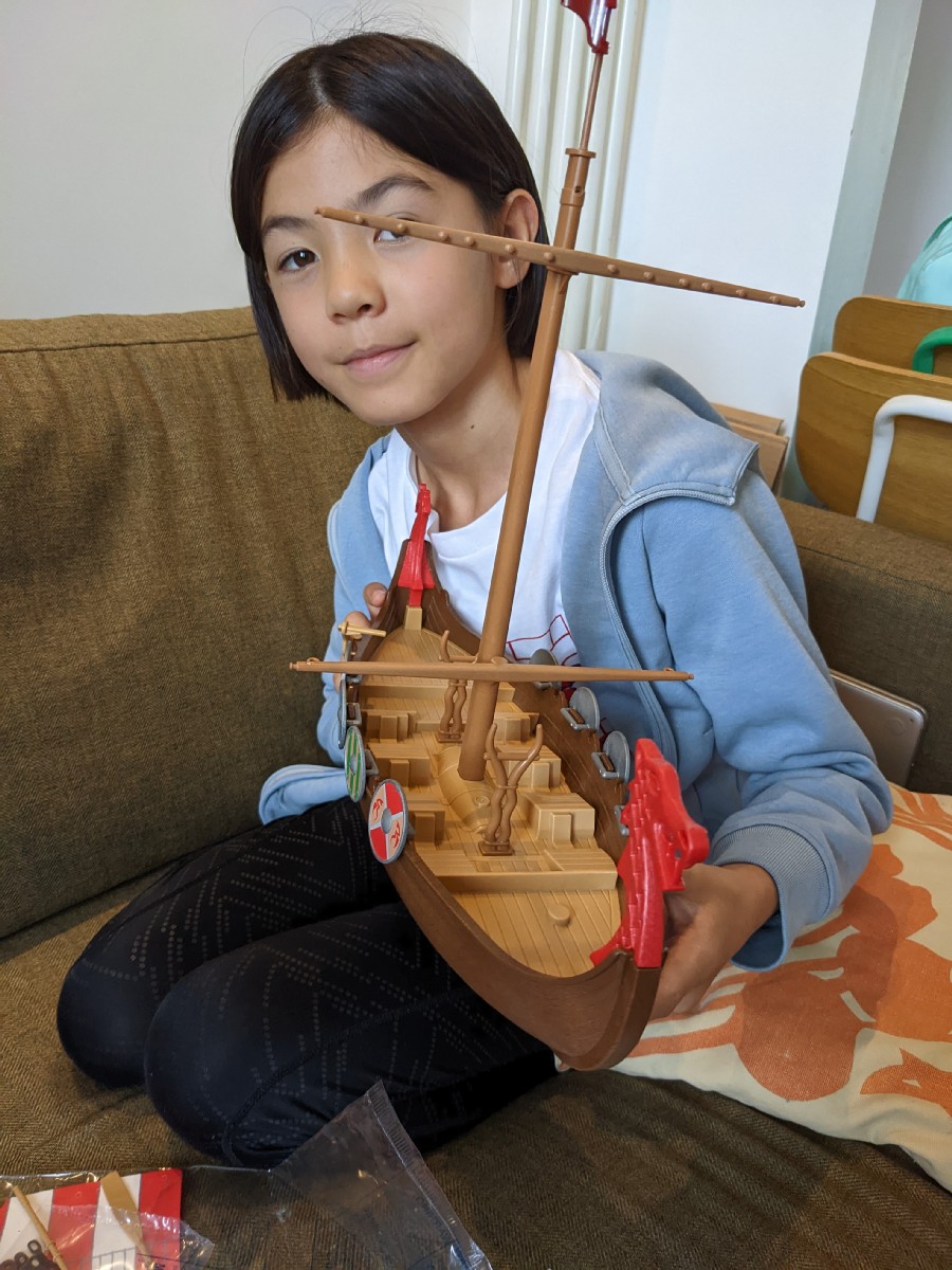 07:30:57 Pile of presents for Erika. | 07:47:22 Erika and her sea monkeys (tiny shrimp things) from Japan. | 07:55:22 A sort of sandscape thing from Adrian and Liz. | 08:46:54 Erika is studying vikings at school at the moment so as a silly present I got her a viking long boat. |