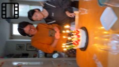18:24:34 Erika and her friend at dinner - by Erika's request I had made a trio of pasta - three different shapes with three different sauces (pesto, cheese sauce and a sort of Bolognese). They are drinking "Kodomo no Biru" - "Kid's Beer". From Japan of course. | 19:08:33 Erika putting the finishing touches to her cake. | 19:11:02 A couple of videos of the birthday cake. | 19:11:53 |