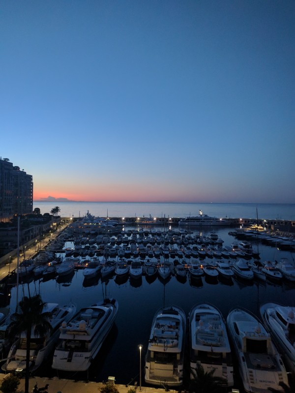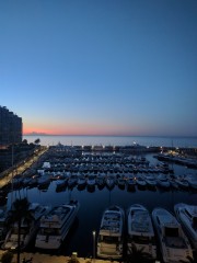 18:20:59 After getting back to the hotel, while Chie and Erika were having a rest in our room, I headed out for a pre dinner stroll, in the hope I might find somewhere for an aperitivo perhaps. Alas there's not much in the little harbour in Cap d'Ail, especially on a Sunday. So I just wandered along the harbour wall and took in the views. | 18:21:59 We were actually very close to the Heliport, so I watched some helicopters taking off and landing. | 18:22:03 | 18:22:53 |