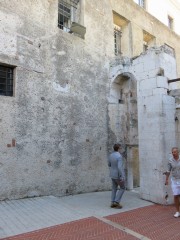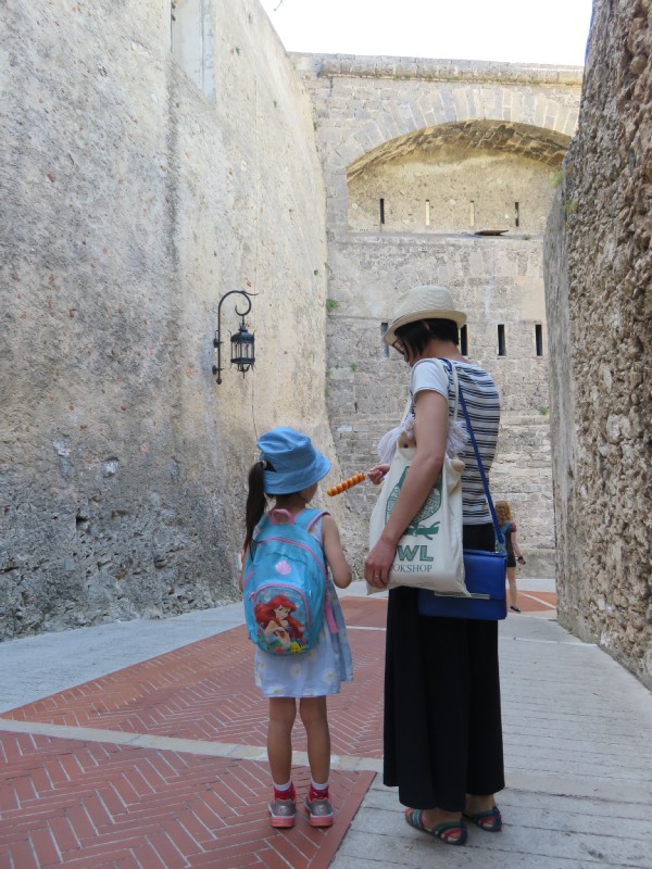 14:24:44 Another picture of Chie and Erika and the Prince's palace. | 14:27:53 Walking back down the path which had led us up to Le Rocher. | 14:28:29 | 14:28:38 Me posing rather spivvishly at one of the gates. |