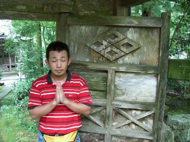 15:43:16 Shig standing in the oldest gateway in the temple complex. Apparently this four diamond shape pattern here is actually his family emblem - they've had a long running association with this temple.