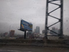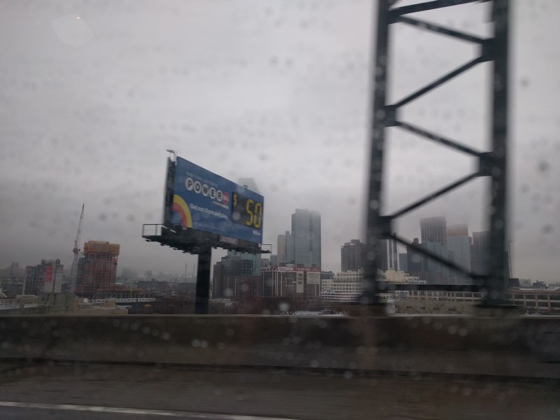 08:39:39 On the plane. Nice to have got a bit of tweed in shot, the only thing aesthetically I like about this whole scene. | 13:54:28 In a taxi from JFK to Manhattan. Very wet and grey outside. | 14:45:58 More rainy New York through a window pictures. | 19:11:55 Some mud on the streets of New York. |
