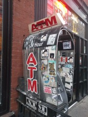 07:17:14 A cash machine covered in stickers and avine fecal matter. This to me pretty much sums up New York. | 07:25:15 View from the office in the morning. The sort of thing you'd probably like if you liked New York. Which I don't. | 08:29:09 Bottomless portafilters on the coffee machine. | 12:05:49 Kimchi at Momofuku Nishi. |