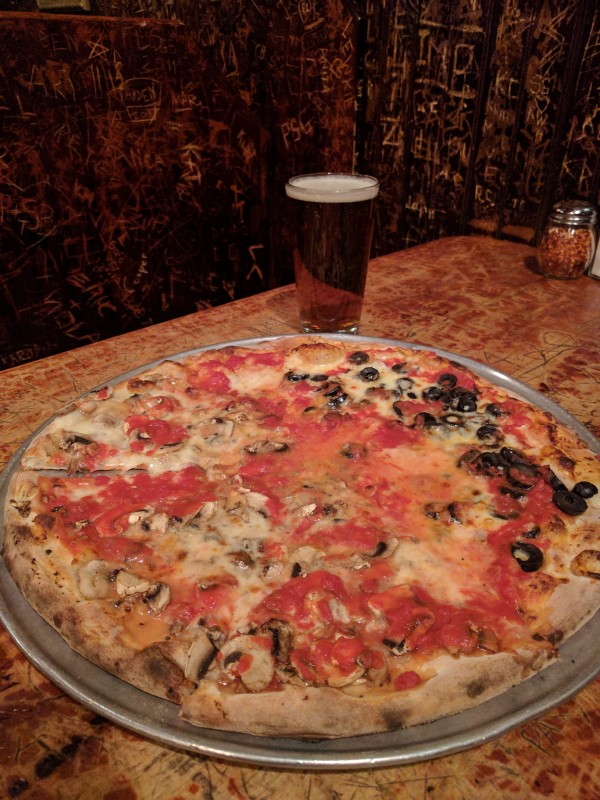 08:07:17 Another view from the office. | 19:09:47 My solo dinner at John's Pizzeria on Bleecker Street. I had been here on my first work trip to New York in 2009 and had literally bought the T-shirt (because of the name obviously) so found it oddly comforting. Yes I ate this entire pizza. | 19:34:31 The sign. |