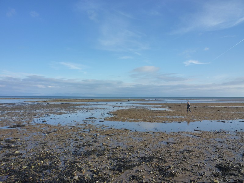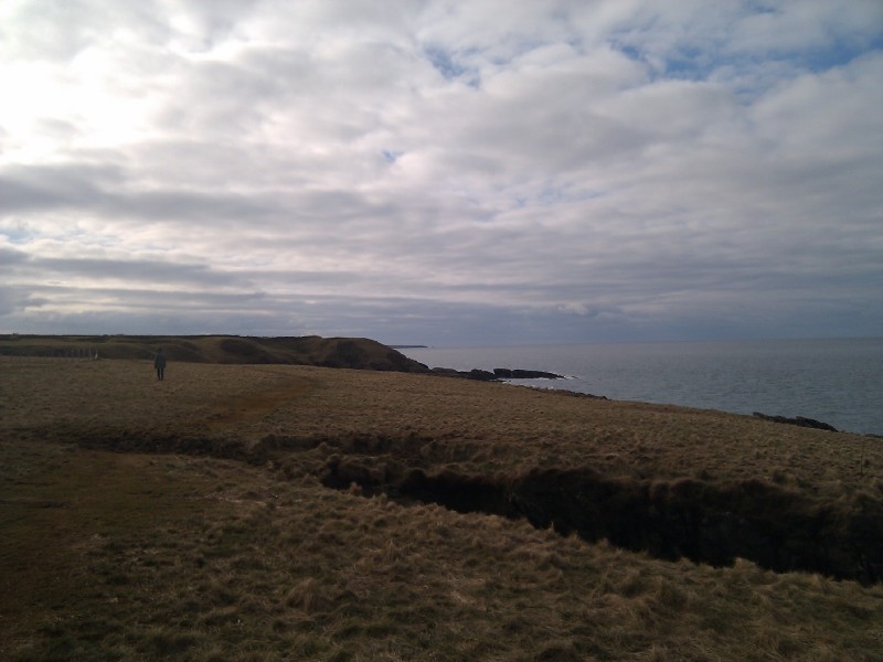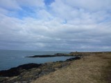 | 11:03:14 Trying to get a picture of the numerous birds that congregate outside Dad's house. It didn't really work. | 11:53:38 Out for a stroll by the sea now. | 11:53:49 Nice view of Porth Ysgaden with a billowy sky. |