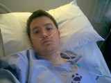 | Around 11:30AM. A self portrait, taken shortly after I woke up after my operation, and once I'd been wheeled back to my room. | I thought I looked a bit serious in the previous one, so had a go at smiling here. | Later on, just before 3PM, and I'm already looking much perkier! Note the change of outfit here - the surgical gown has been swapped for this rather fetching yukata from Muji. |