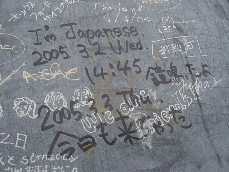 11:49:56 Graffiti on the roof of Carfax Tower apparently left by a Japanese tourist. |