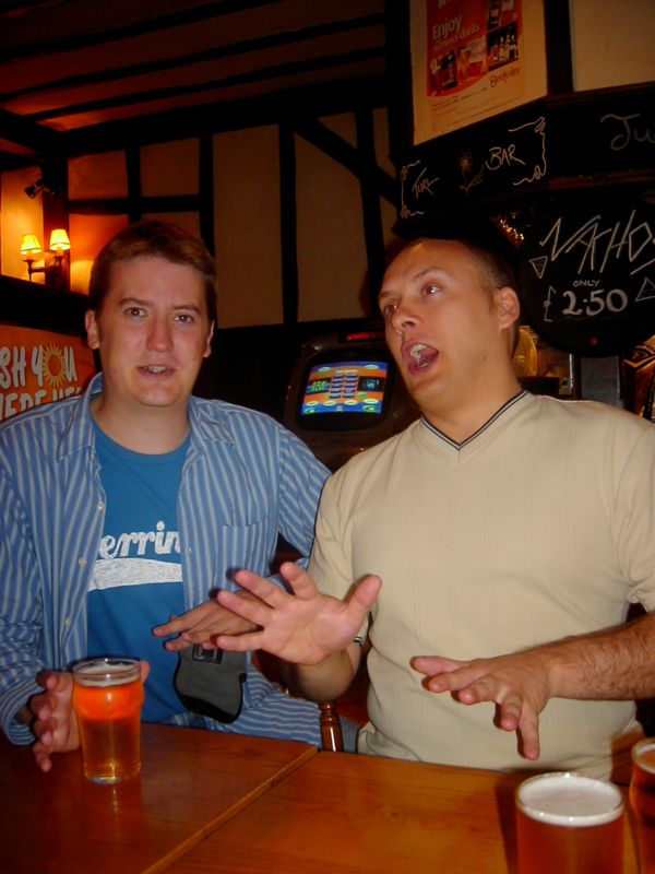 21:11:14 Duncan and Kev engaged in what appears to be a very heated debate, in the Turl Bar. |