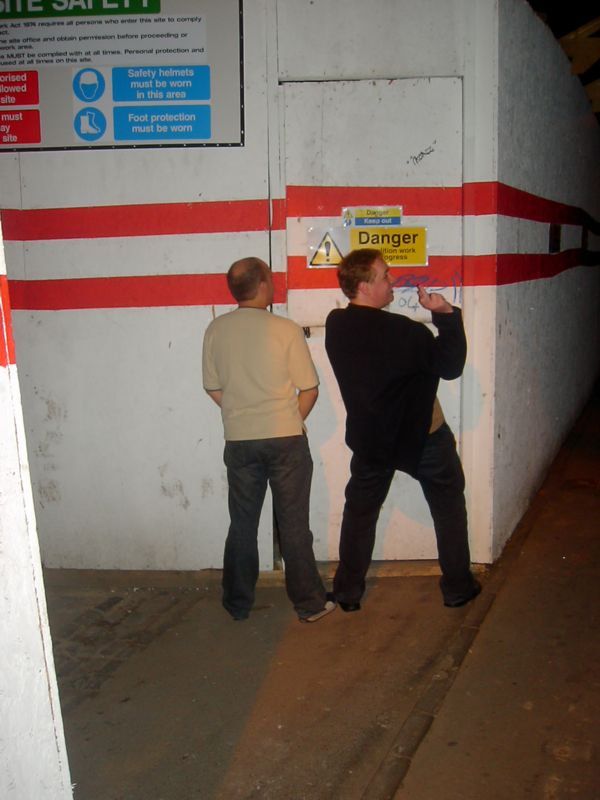 21:46:22 Kev and Duncan pretending (I'd like to emphasize the pretending here) to relieve themselves against this makeshift wall. |