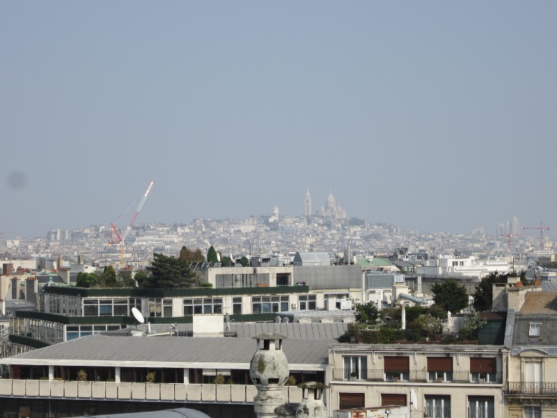 15:27:24 We thought we'd go up the stairs to the roof terrace. | 15:28:04 Rather nice window in the stairwell. | 15:28:36 Up on the roof terrace now, views to the Arc de Triomphe... | 15:28:54 ...Sacre Coeur... |