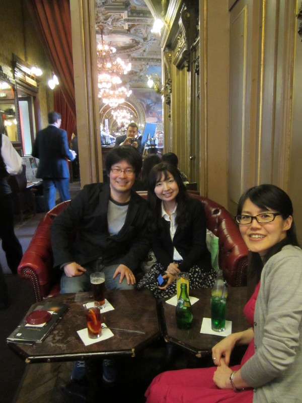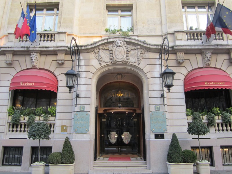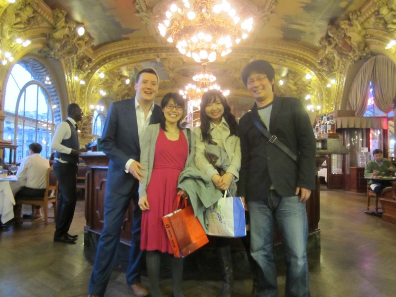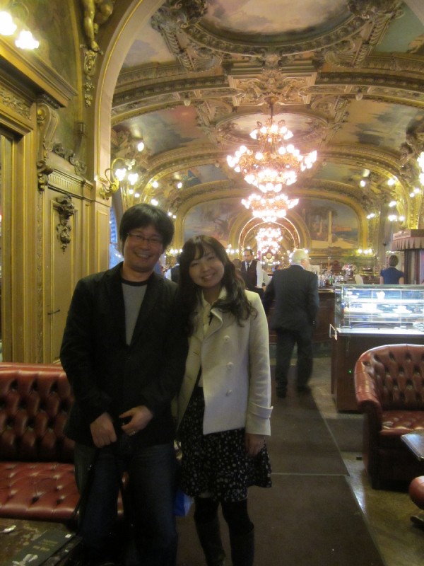 19:01:44 I rather like this picture of the two of us, taken by the concierge, in the hotel lobby, as we were heading out for the evening. | 19:02:31 The outside of the hotel. | 19:53:39 Sato-chan and her husband in Le Train Bleu. | 20:23:39 A bit blurry unfortunately! |