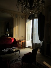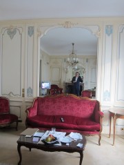 14:44:47 Our room at the Hotel Raphael. There were, I think, enough seats for 10 people. Which seemed a little excessive in a room for 2. | 14:45:11 Me in the chaise longue. | 14:45:25 I think I could get used to this kind of lounging. | 14:47:48 Fresh flowers which had been brought to our room when we arrived. |