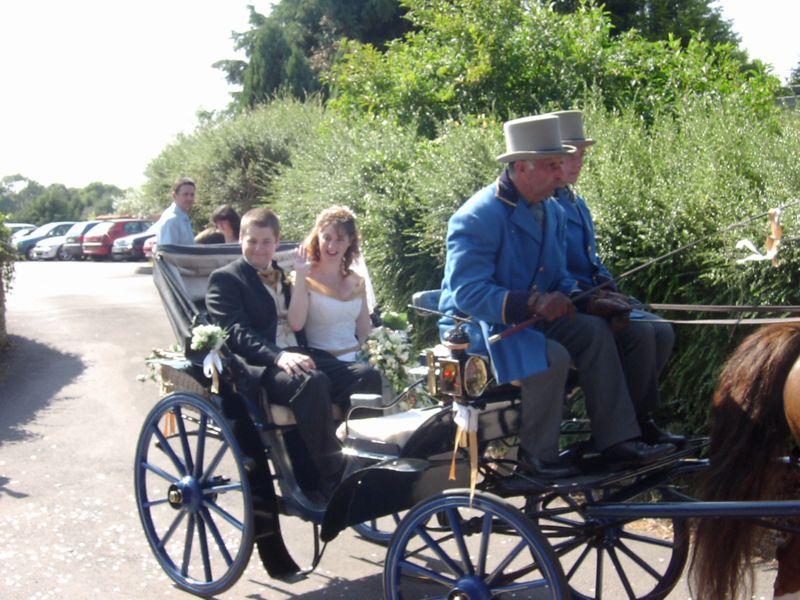 15:59:04 As my bitterness over the photographer subsided, the horse drawn carriage pulled up to whisk Rich and Rosie away (well, to the reception at least). I secretly wish I'd thought of this idea first. |