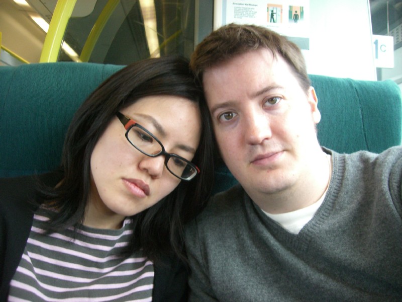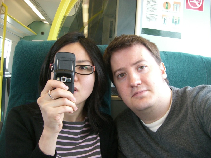 | 11:12:32 Here's me and Chie on the train, with Chie oddly taking a picture of my camera as it was taking a picture of us. | 11:13:36 ...same again without the phone in the way. | 11:47:18 There's Rye station. |