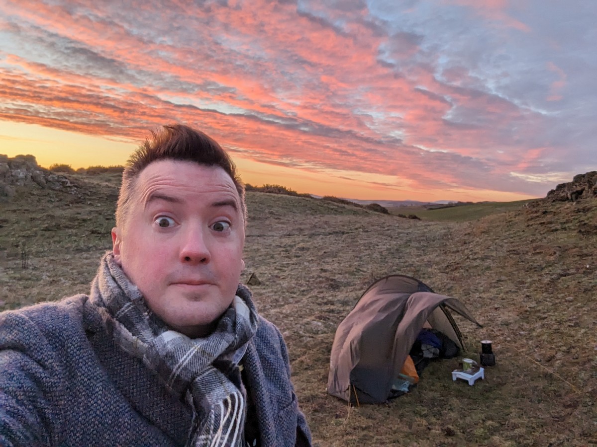 07:50:41 Hopefully this gives a bit of a sense of how chilly it was! | 07:50:49 I was sort of in the process of packing up camp, but I tried to do as much as I could inside the tent to stay warm, then I would pop out for a minute to see what the sunrise was doing. | 07:50:57 | 08:09:25 Pretty stunning I hope you'll agree. |